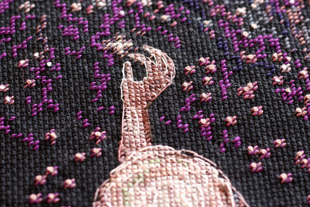 Kit de point de croix, presque monochrome pour réaliser ce motif de femme sous les étoiles.