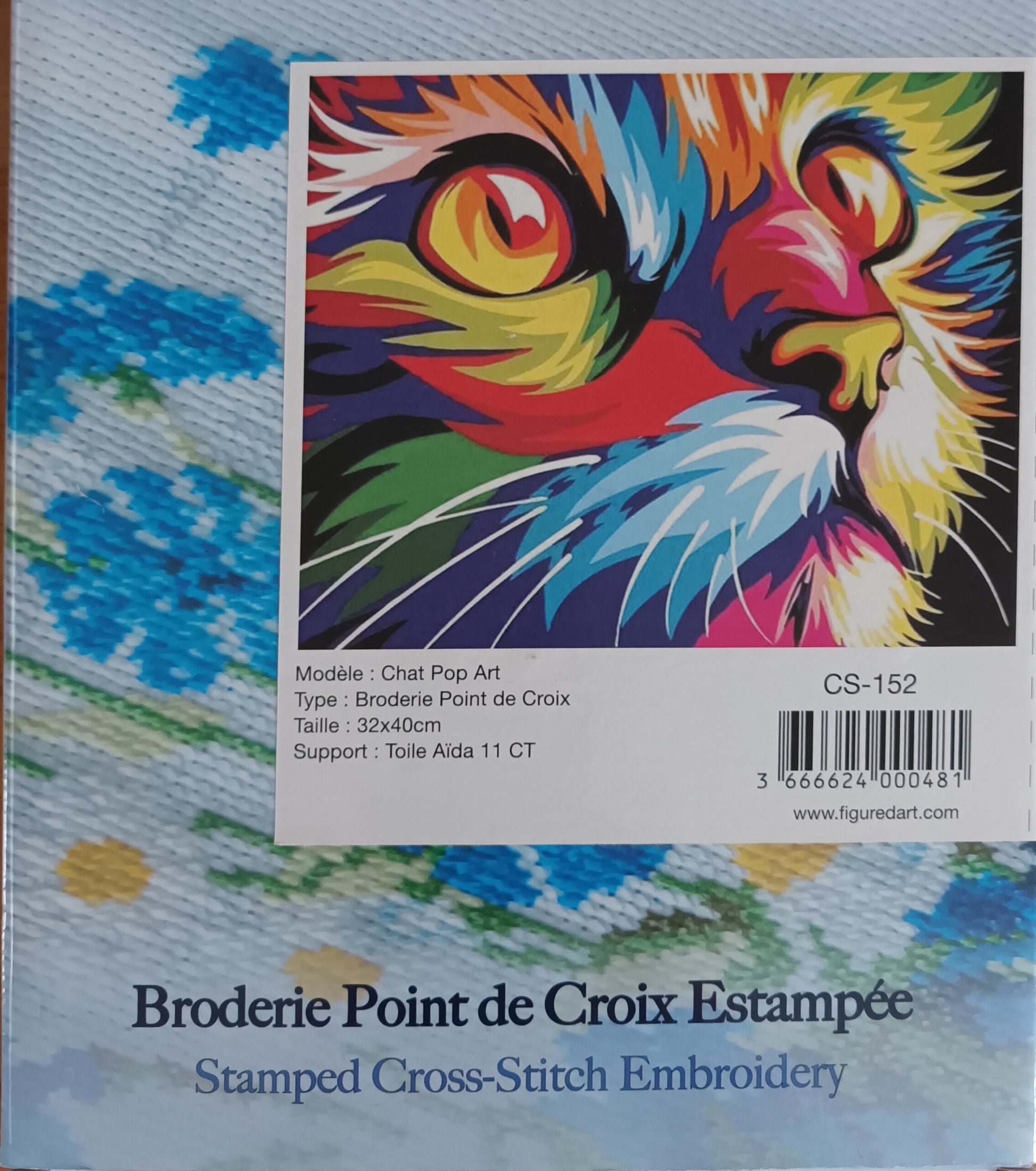 Kit point de croix estampé pop art CHAT