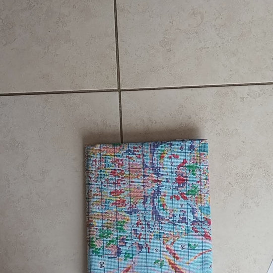 Une fois broderie terminée, il vous suffit de la tremper dans l'eau tiède quelques heures afin d’effacer l’encre des couleurs sur la toile. Magique, il vous restera une broderie point de croix comme si vous l'aviez faite sans guide.