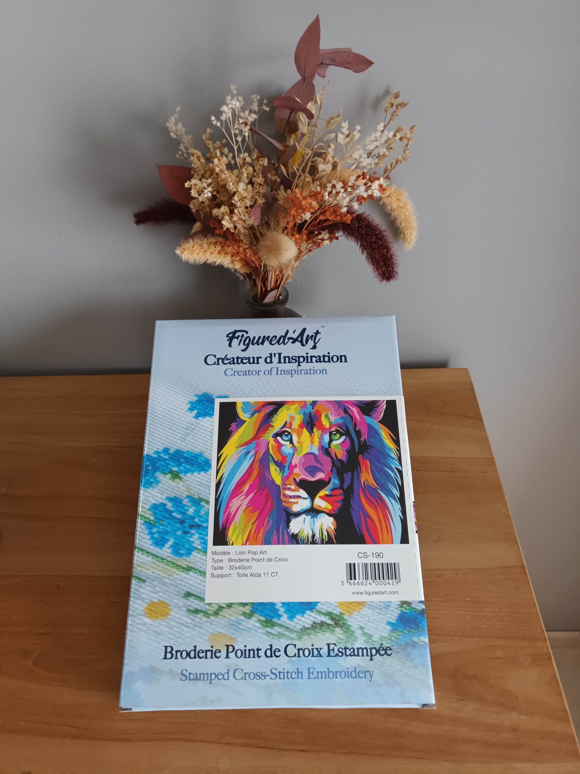 Kit point de croix estampé pop art LION
